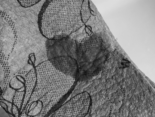 Siinä miettiessäni kaadoin samalla pesuainetta kuivaan pölyrättiin ja hämmästykseni oli melkoinen, kun pesuaine muodosti rättiin sydämen kuvion. Juoksin olohuoneeseen hakemaan puhelimen, koska se sydän oli pakko saada ikuistettua.