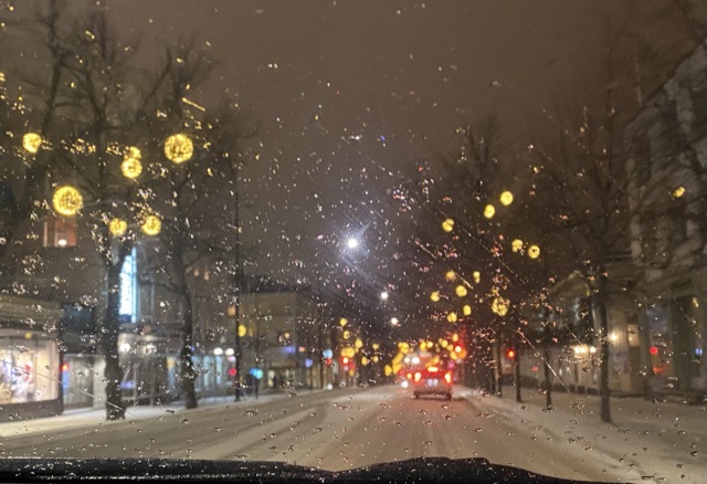 Joulukuun 11. ja 12. päivän välisenä yönä, päivän lorvimisesta energisoituneena, kirjoitin kortit ennätysajassa samalla ihmetellen, että miten olin aiempina vuosina saanut kulumaan kyseiseen puuhaan monta tuskaista iltaa. Uupumuksella saattoi olla osuutta asiaan. Joulukuun 12. päivä pudotin kortit kirjelaatikkoon helpotuksesta huokaisten – yksi homma to do -listalta hoidettu kokonaan – ja tallustelin sohjossa pikaiselle kierrokselle sumun peittämälle joulutorille.
